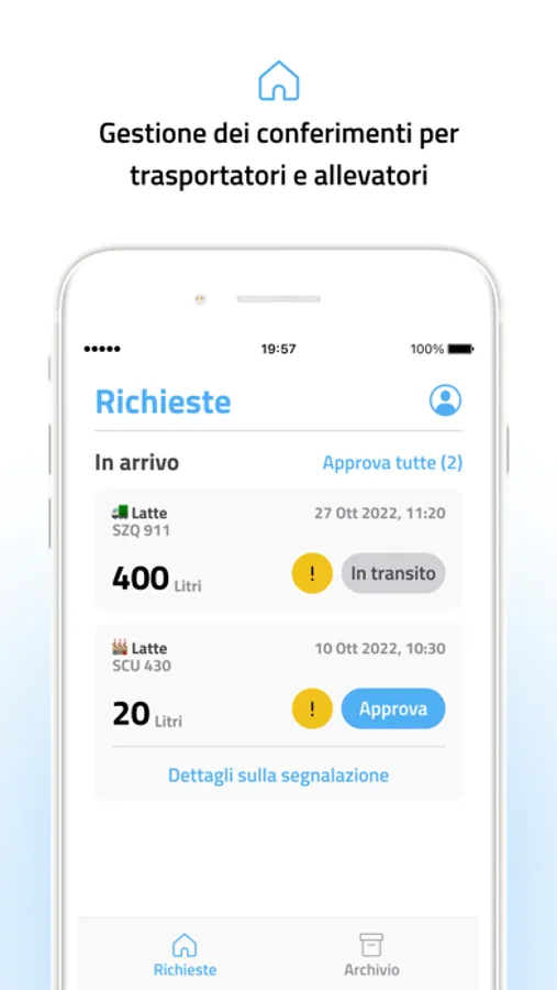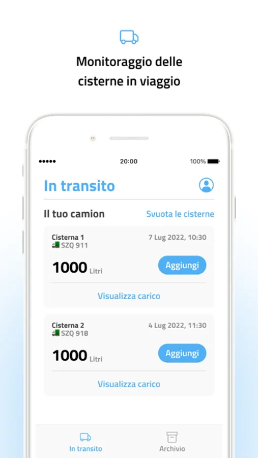 "Questa applicazione permette a Produttori e Trasportatori di utilizzare le proprie credenziali per gestire le interazioni sul servizio Unblended.