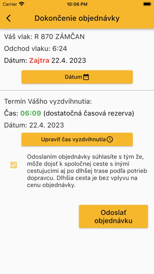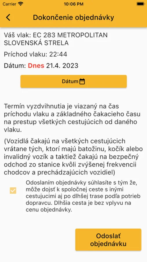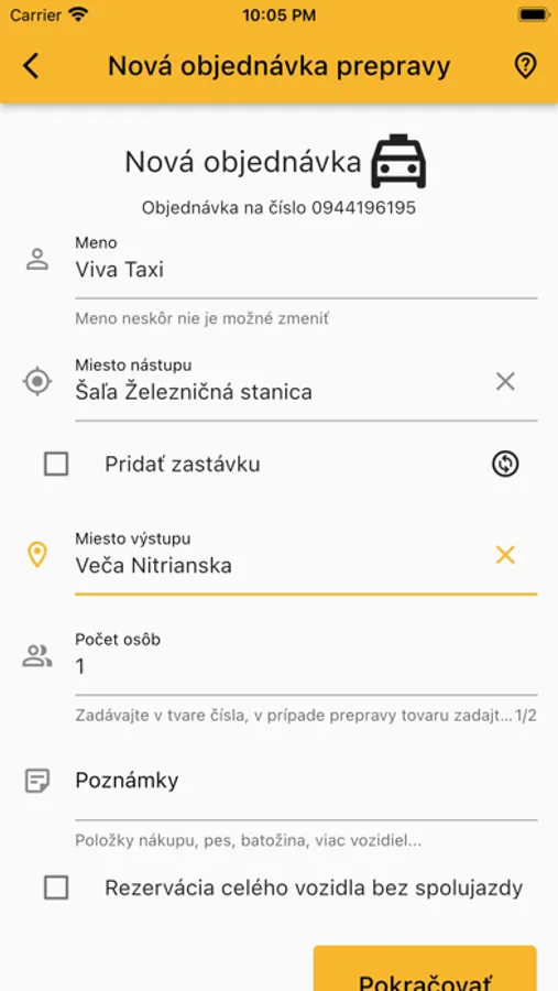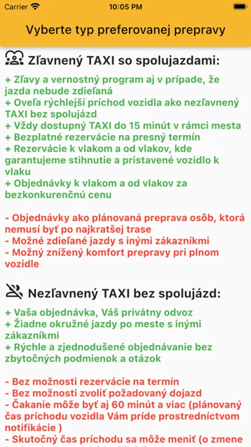 Cez našu novú aplikáciu si môže pohodlne objednať taxi odkiaľkoľvek a kedykoľvek. Využite možnosť vytvárania predobjednávok či sledovania polohy šoféra. Pri ceste vlakom si pohodlne vyberte Váš vlak zo zoznamu ktorého príjazdu aj odjazdu sa prispôsobíme. Odteraz máte možnosť výberu spôsobu prepravy, či chcete cestovať sám alebo Vám neprekážajú zdieľané jazdy. Spravujte históriu či hodnotenia Vašich objednávok jednoducho zopár klikmi. Prostredníctvom notifikácie Vám vopred oznámime cenu aj čas príchodu šoféra na Vaše miesto nástupu. V detailoch objednávky uvidíte značku aj evidenčné číslo vozidla pre Vašu lepšiu orientáciu medzi našimi vozidlami. A to všetko sa bude ďalej zlepšovať a rozvíjať!