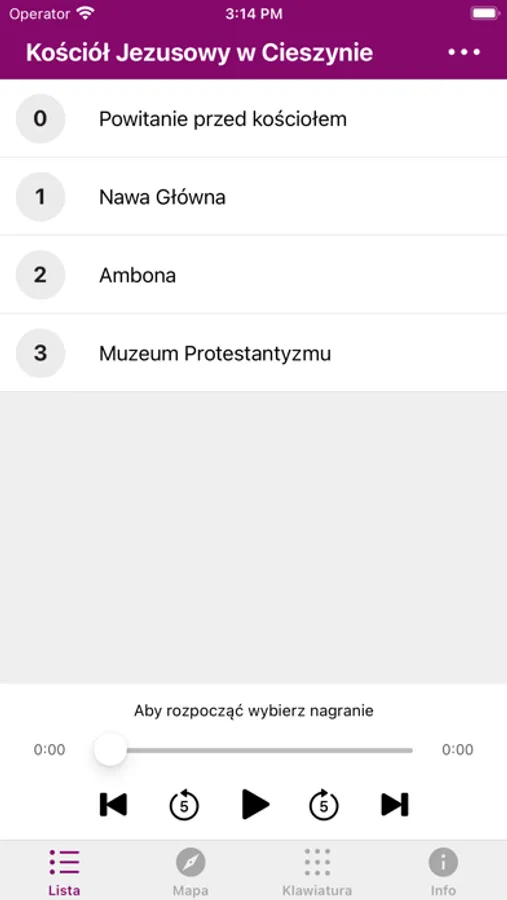 Audioprzewodnik pozwalający na zwiedzanie największego w Polsce i Europie Środkowo-Wschodniej kościoła ewangelicko-augsburskiego (luterańskiego) – Kościoła Jezusowego oraz Muzeum Protestantyzmu w Cieszynie.