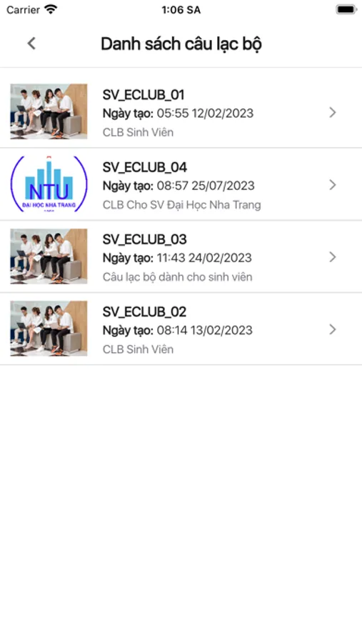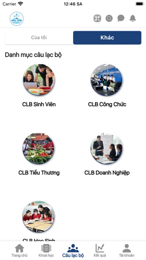 2. Câu lạc bộ: Danh sách các CLB phù hợp các nhóm đối tượng: Công chức, Sinh viên, Doanh nghiệp, Tiểu thương