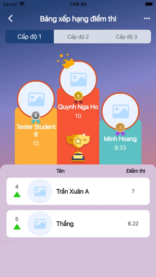 1. Dashboard: bảng xếp hạng/vinh danh người học có kết quả xuất sắc với những phần quà giá trị