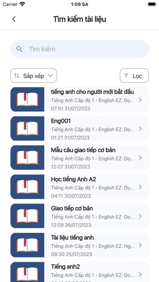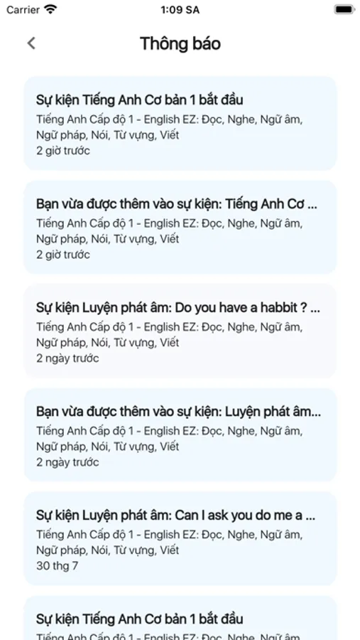 3. Danh sách khóa học: Với hệ thống các bài học E-learning và mini games tương ứng với 3 cấp độ khác nhau: English EZ, English Free, English Pro phù hợp với từng nhóm đối tượng và phù hợp với năng lực người học.