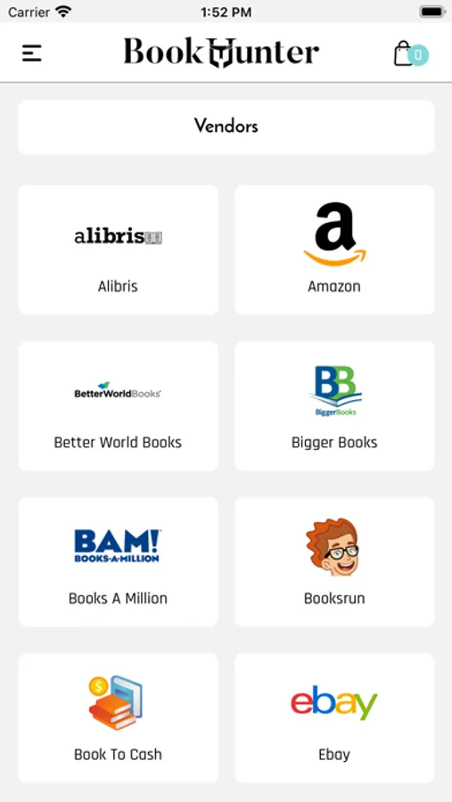 BookHunter has a large network of buyback partners and compares prices from vendors who buy, sell, and rent books such as BooksRun, ValoreBooks, eCampus, SellBackBooks, BookToCash, WinyaBooks, Empire Text, Textbook Maniac, eBay, BiggerBooks, eBooks, Knetbooks, Ziffit (Ziffit by World of Books), Amazon, RMS, Alibris, BetterWorldBooks, Books-A-Million, Vital Source, Biblio, etc.