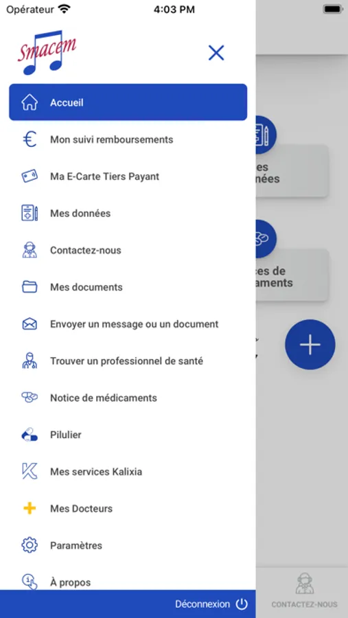 Adhérent(e)s de la SMACEM, retrouvez chez vous et en mobilité sur votre smartphone et tablette l’essentiel des services de votre mutuelle :