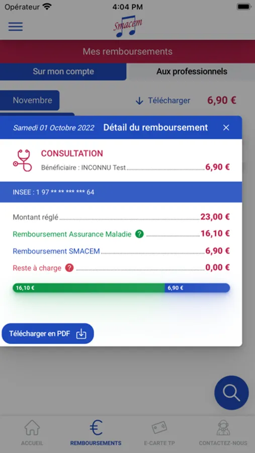 Vous pouvez consulter les remboursements des dépenses de santé de toutes les personnes rattachées à votre contrat.