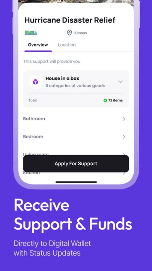 Kare Survivor Wallet - Disbursements for disaster relief powered by AID:Tech’s infrastructure for climate finance. The app enables disaster survivors to apply for assistance and facilitates support in the form of direct cash payments, goods fulfilment and credit by partners such as Amazon Business and Visa.