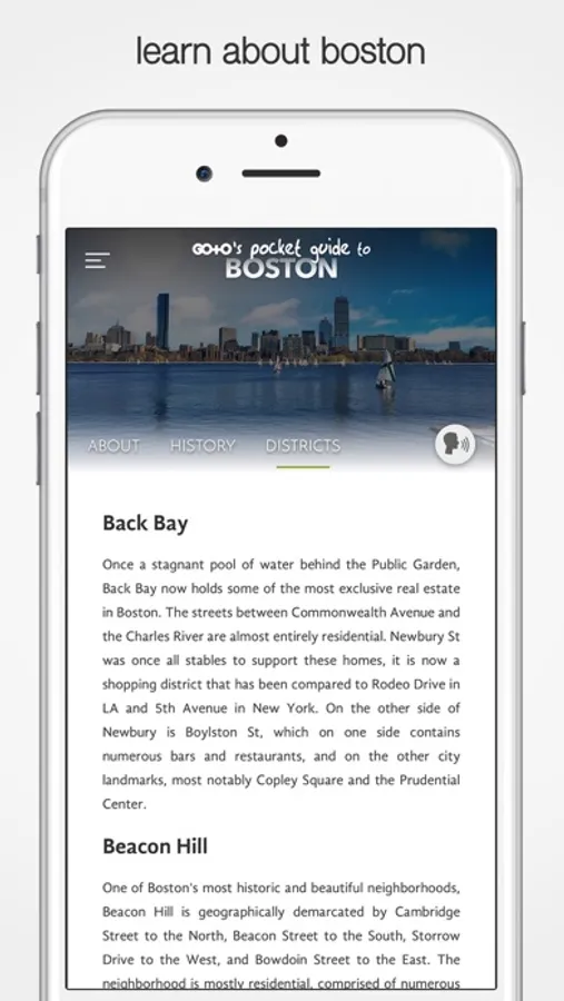 In addition to learning about the rich history of this American city, book guided tours of Boston's most popular attractions, such as Fenway Park, Boston Harbor, New England Aquarium and more! Use this free travel guide app to get cheap tickets and skip the lines at the tourist attractions. With our easy-to-use city guide & trip planner, your smartphone becomes your personal tour guide through the streets of Beantown.
