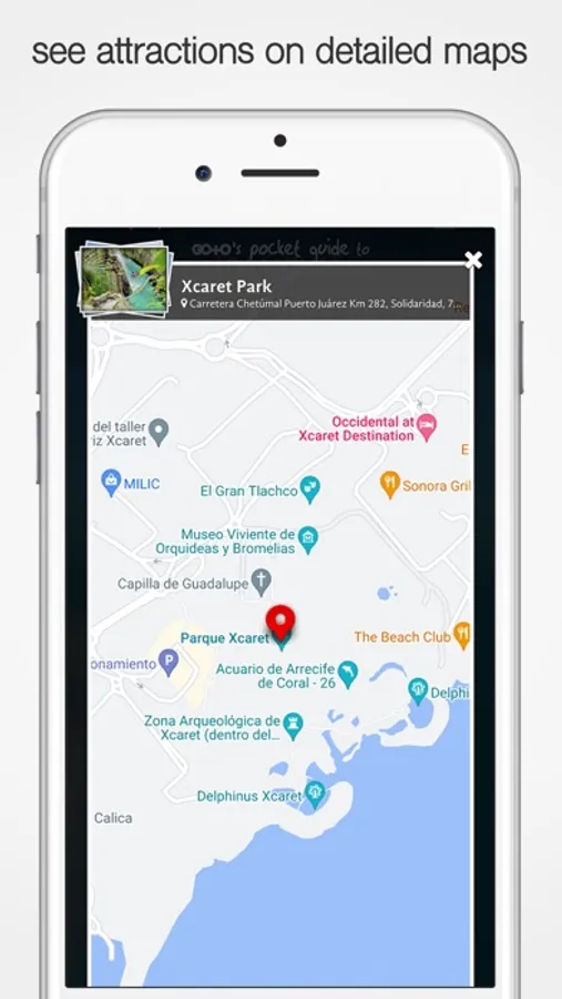 In addition to learning about the rich history of this Mayan wonder, book guided tours of Cancun's most popular attractions and nearby activities, such as Xcaret Park, Chichen Itza, Isla Mujeres and more! Use this free travel guide app to get cheap tickets and skip the lines at the tourist attractions. With our easy-to-use city guide & trip planner, your smartphone becomes your personal tour guide around Cancun.