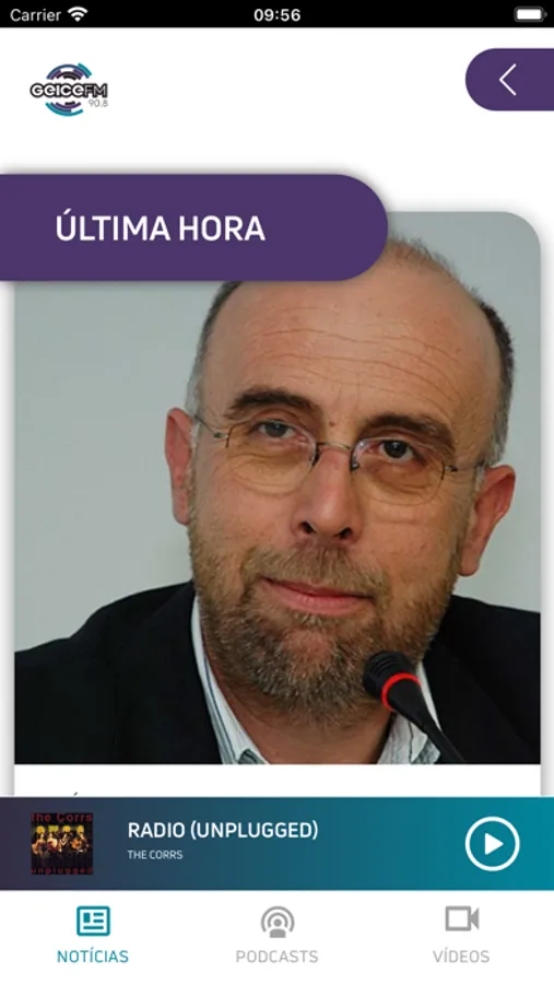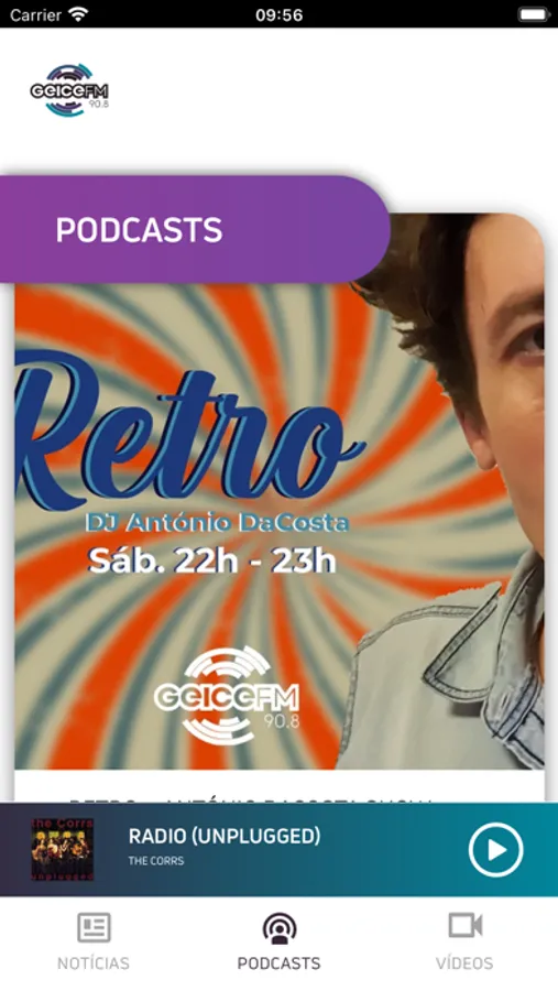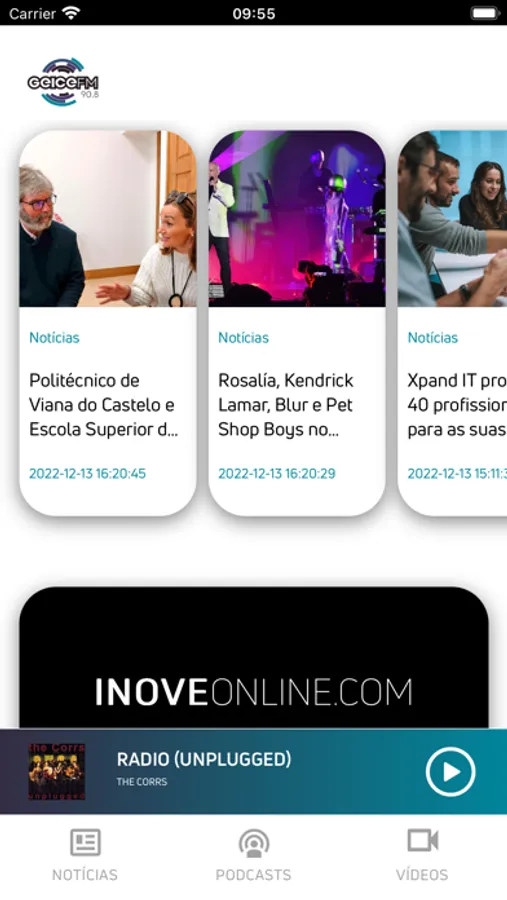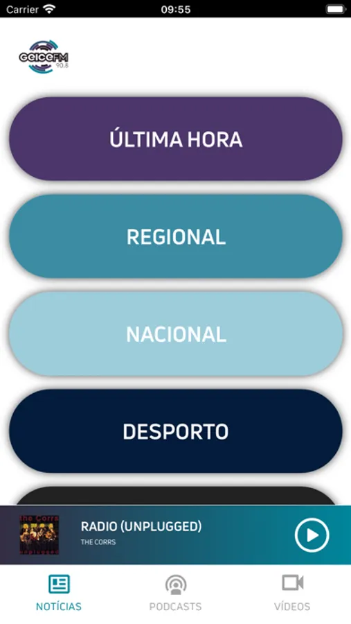 Aplicação com as notícias e podcasts passados na Rádio Geice