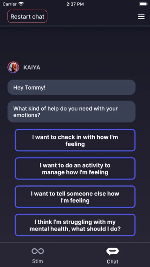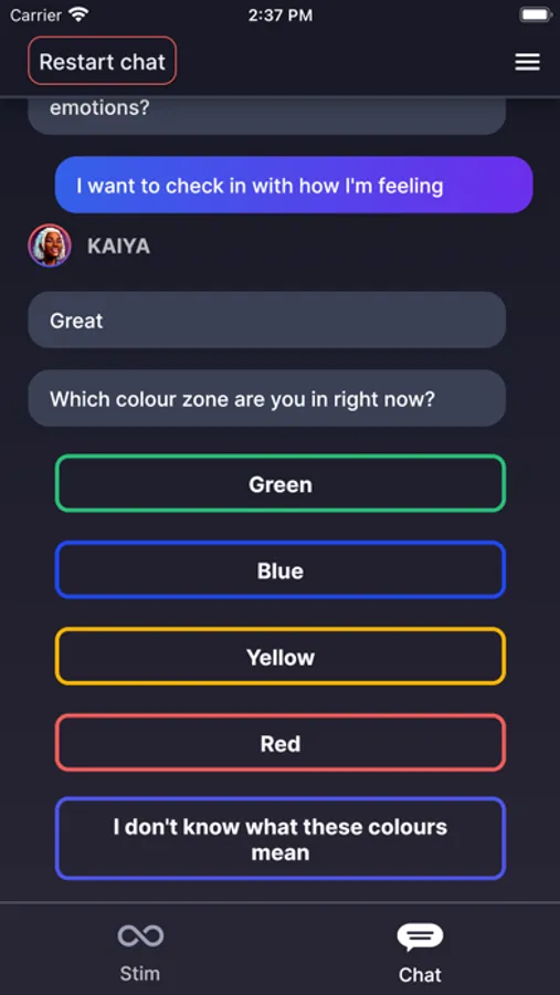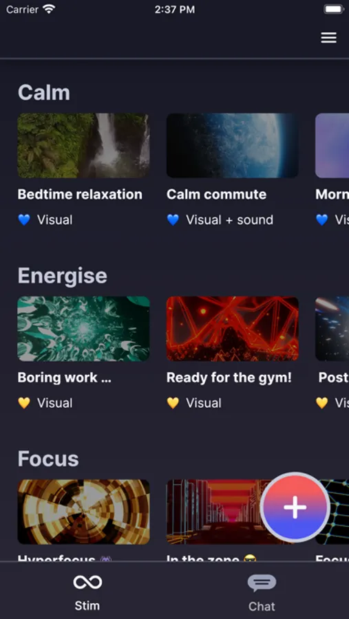 Cogs helps you to self-regulate and maintain good wellbeing practices through a combination of chat-based and stimming features.