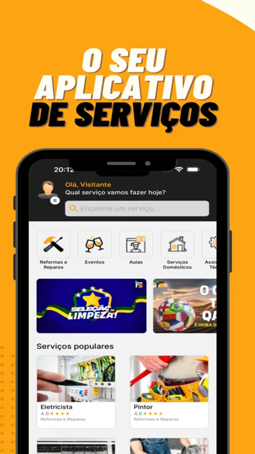 Para o caso de você precisar de eletricista, engenheiro, pedreiro, pintor e muito mais para te ajudar na sua reforma e em algum conserto.