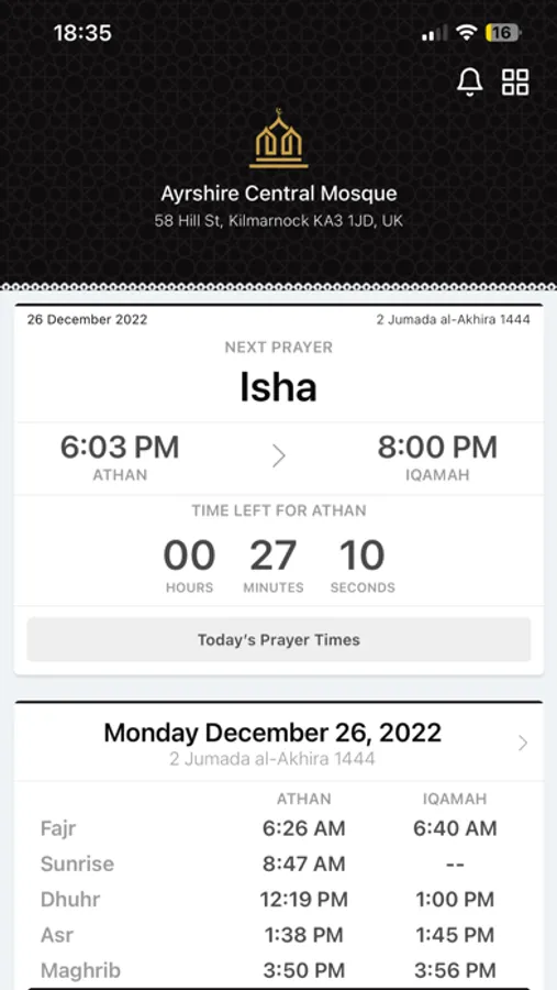 - Iqamah times