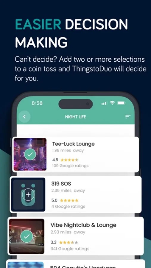 With ThingstoDuo, you can easily search or sort by category and find things to do anywhere in the world! You can also make decisions with a coin toss and save your favorites to your user profile. Plus, our app offers exclusive discounts from local businesses, so you can save money while having fun.