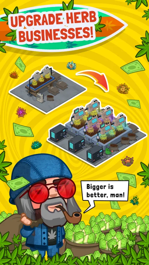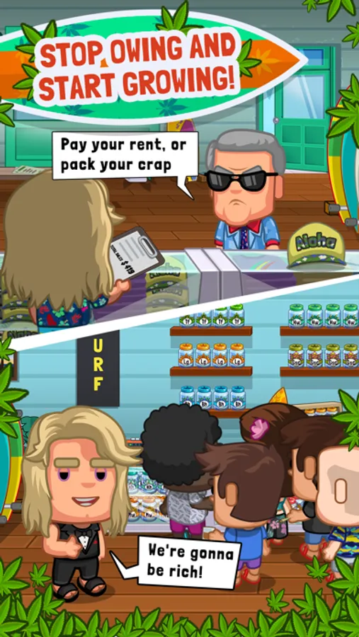 Help Jake Spinelli turn his 1980’s surf shop into the raddest underground grow op on the island. Build cannabusinesses and transform the beach into a rockin’ stoner paradise!