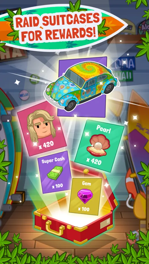 Check-in for daily rewards, and hire Beach Bums to collect cash even when you’re away!