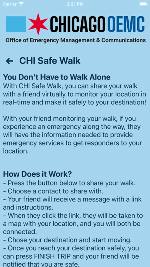 Chicago OEMC is the official safety app of Chicago’s Office of Emergency Management and Communications (OEMC). The app will send you important safety alerts and provide instant access to all available resources. Enhance your safety with the set of tools provided in one convenient app.