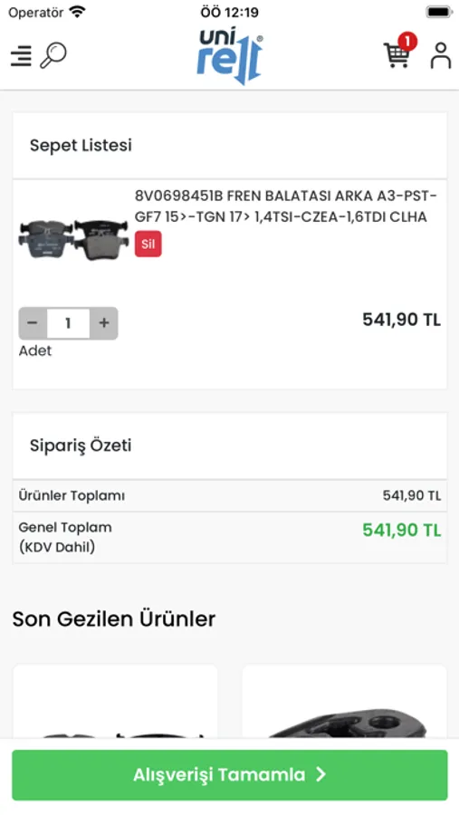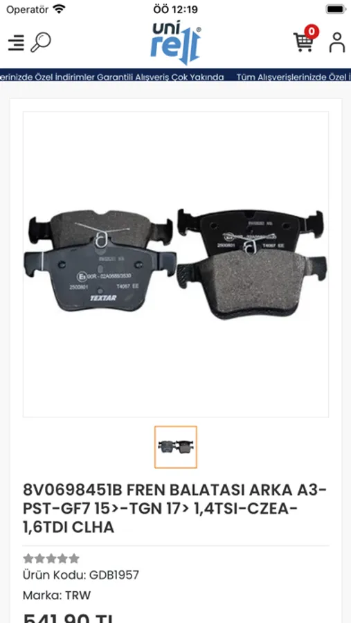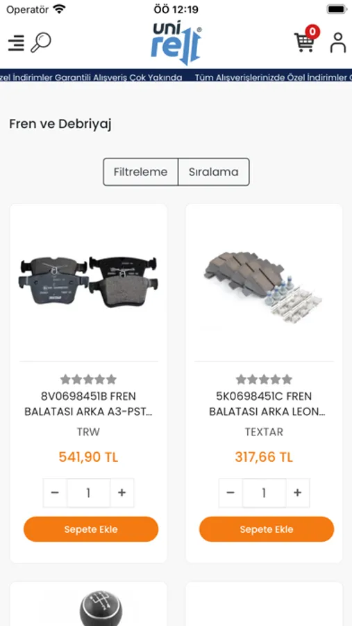 Unirell mobil uygulamasıyla fren ve debriyaj, motor, gergi sistemleri, filtreler, süspansiyon, egzoz, turbo hortumu, elektrik ve aydınlatma, yağlar ve aksesuar kategorilerine göz atabilir ve ürün satın alabilirsiniz.