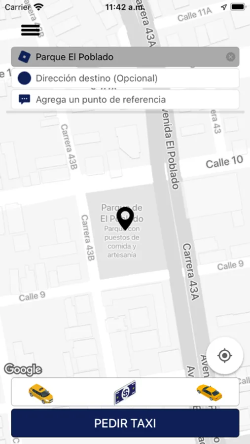 • Confirma tu ubicación escríbenos alguna referencia y "Solicita taxi"