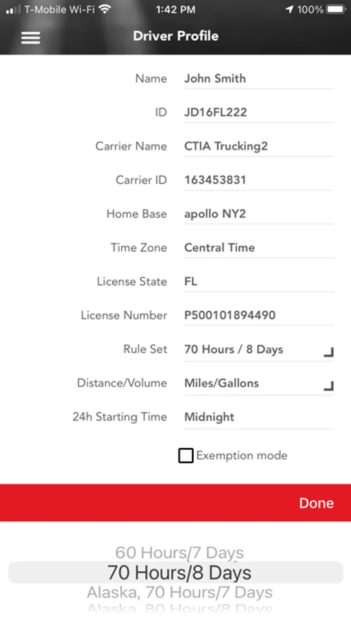 Compliant app to record driver duty status and meet the following US and Mexico regulations: