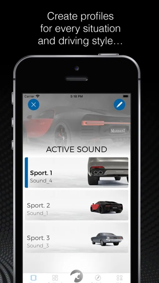 Über die Bridge App können alle Maxhaust Produkte konfiguriert und bedient werden. Über die Szenensteuerung können bspw. Profilwechsel automatisiert oder die Produkte ein- oder ausgeschaltet werden über original Fahrzeugtasten.