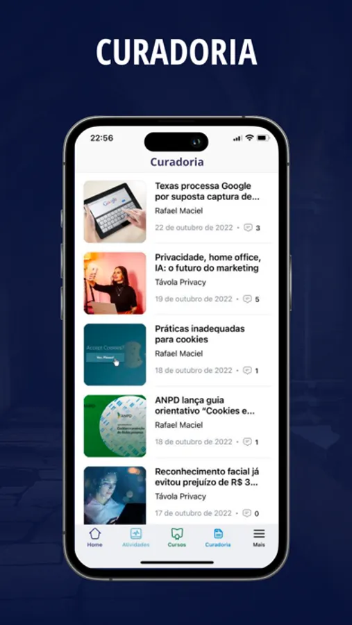 Aplicativo nos moldes de redes sociais. Nele, além de comunidade para discussão e interação sobre os temas de Digital, Privacidade e Cibersegurança, os usuários também poderão adquirir novos cursos ou aulas específicas. O menu contém todas as configuração de privacidade seguindo a linha do Privacy by Design.