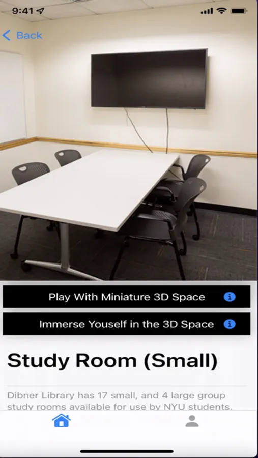 Enhance your NYU Dibner Library experience and preview the different study rooms available in Dibner Library through augmented reality. Reserve rooms quickly and easily.