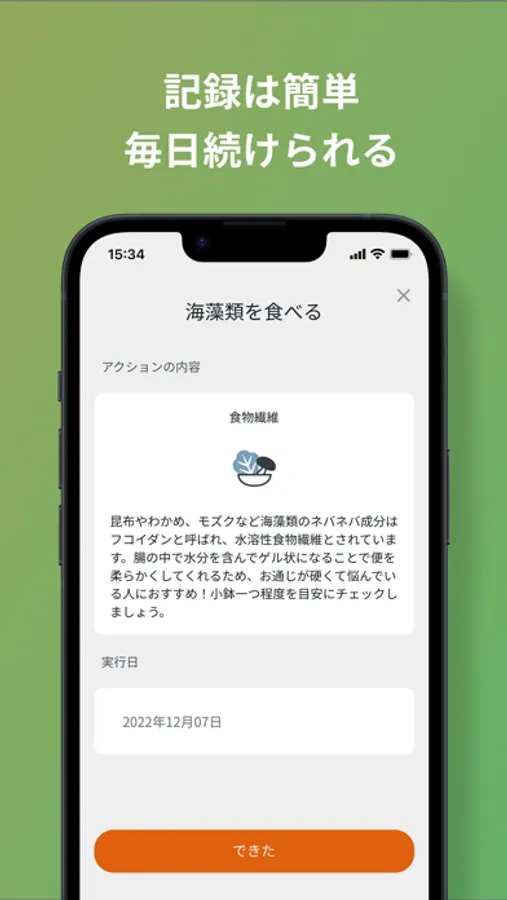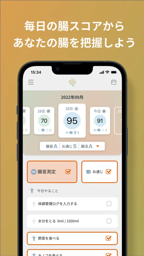 日々のお通じや腸活を毎日記録をつけることができます。あなただけの腸活リストを作って、自分のペースで自分だけの腸活を進めよう。