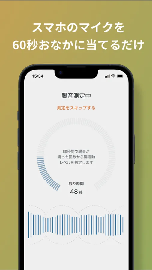 2. 腸が動くことで発せられる音をスマホが集音し分析する