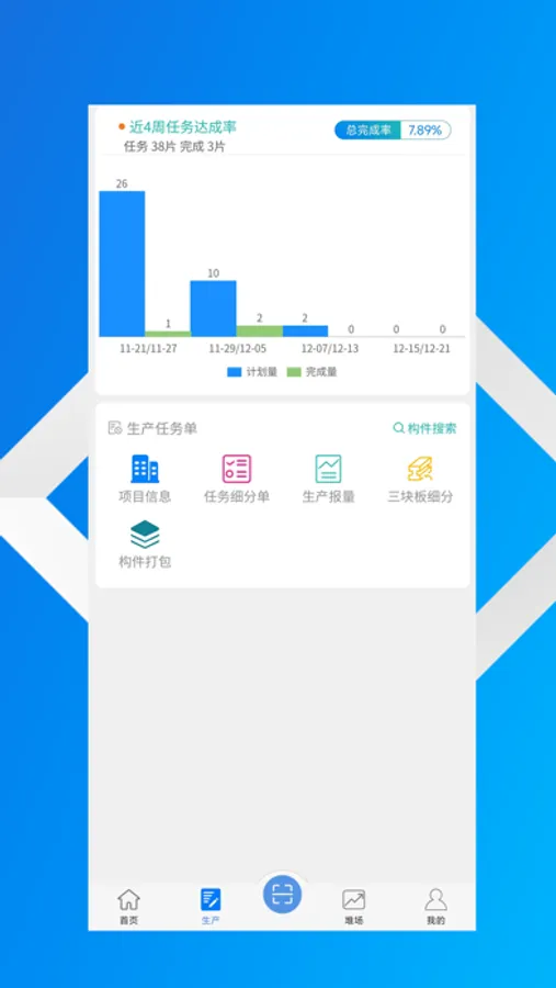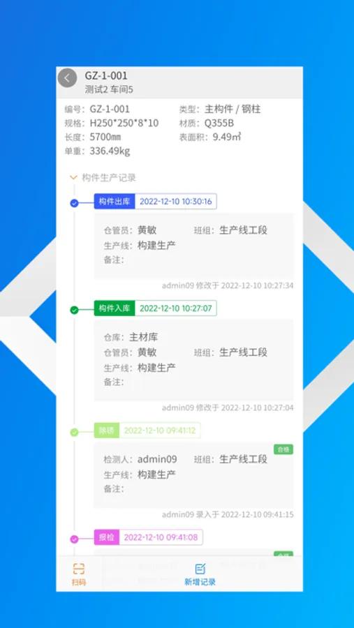 装配式建筑钢结构生产工艺特殊、成本控制要求高、物料和产品库移不方便,另外在销售订单处理与生产计划等信息需要联动,才能使企业真正实现数字化转型。“智慧钢结构”APP是一款辅助钢构ERP的管理工具,通过扫码完成快速出库入库和工艺流程的审核,可减小工作中错漏和失误的发生。