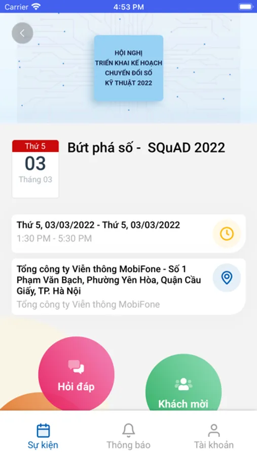 MobiFone Event - Ứng dụng hỗ trợ việc tổ chức sự kiện một cách chuyên nghiệp, hiệu quả. Khách mời cập nhật thông tin về sự kiện một cách nhanh chóng, dễ dàng.