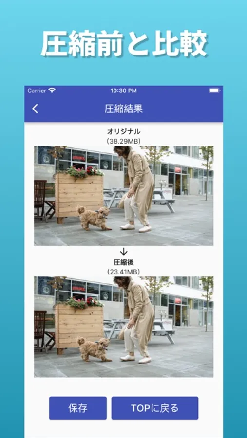 ・シンプルで直感的なインターフェースにより、誰でも簡単にビデオを圧縮できます。画質レベルの選択と圧縮の開始は、数タップで完了します。