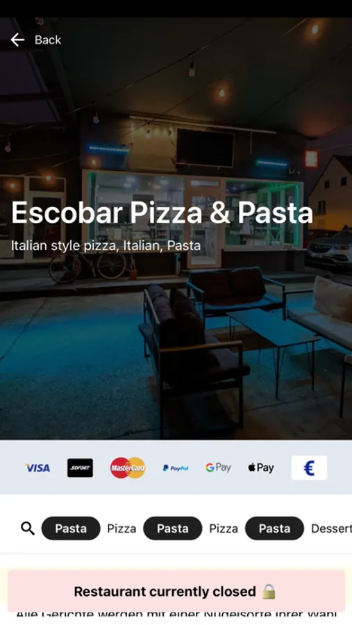 Mit der Escobar Pizza and Pasta Mobile App können leckeres Gericht bequem von zu Hause aus genießen. Stöbern Sie in unserer Speisekarte, wählen Sie die Gerichte aus, die Ihnen schmecken, und geben Sie Ihre Bestellung in Sekundenschnelle auf.
