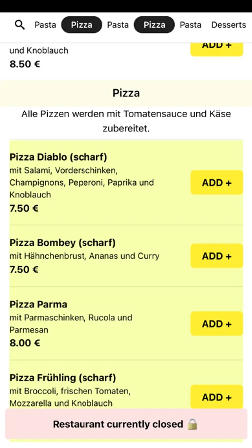 - Durchsuchen Sie die Speisekarte des Restaurants und sehen Sie sich alle anpassbaren Optionen im Voraus an