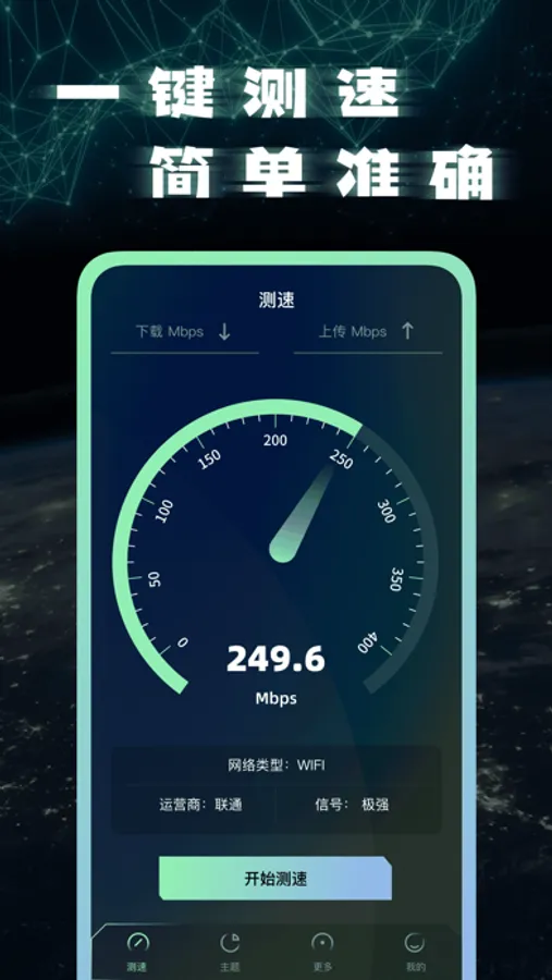 1. 快捷方便,一键测试当前网络下载、上传速度,网络运营商、信号强度快速查询;