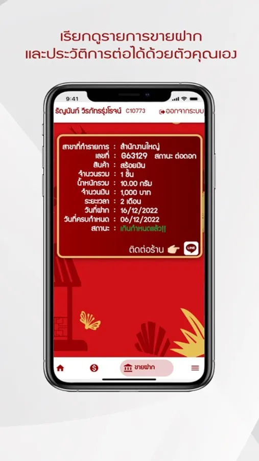 • เพิ่มความสะดวก สามารถเช็คยอดออม คะแนนสะสม และรายการขายฝากที่เราทำธุรกรรมกับทางร้าน