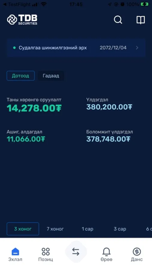 TDB Securities’s online trading system offers you direct market access with the technology insights you need to meet your trading objectives. You can participate in trade and control your securities account by using our online trading system connected directly to the Mongolian Stock Exchange trading platform & American brokerage firm without any delays.Our brokers can provide experienced guidance and informed views on the general direction of the capital markets that you can make your portfolio decisions.