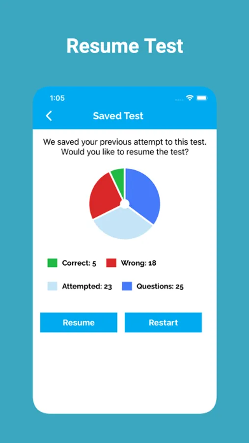 App tracks the users completed practice tests. The app tracks their progress, allowing them to identify areas for improvement and track their overall progress.