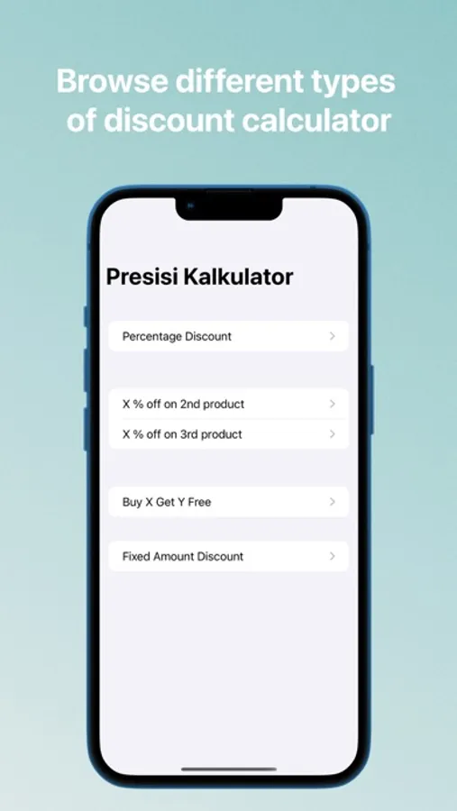 Did you ever see a big banner of big discount but end up still paying a lot of money because you failed to read and understand the fine print? Are you having difficulties understanding different wording of discount and savings ads? Introducing Presisi Kalkulator, your go-to discount calculator to help you so you can find out the expected final price precisely and manage your spending more accurately.