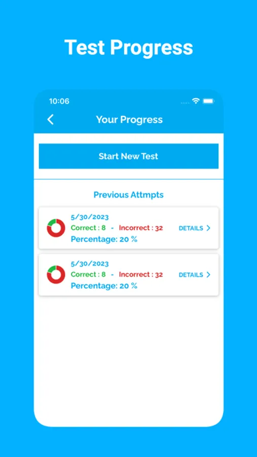 App tracks the users completed practice tests. The app tracks their progress, allowing them to identify areas for improvement and track their overall progress.