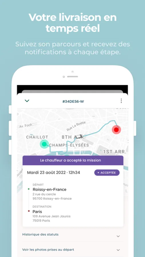 - Suivez votre chauffeur sur la carte en temps réel et vérifiez que la livraison est bien en cours