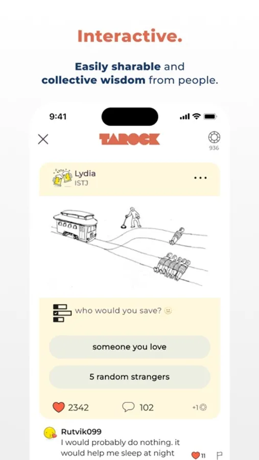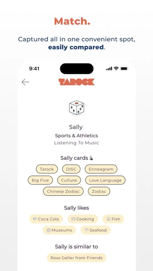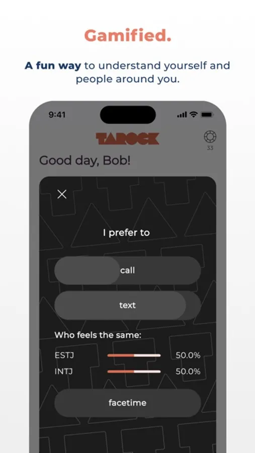 Designed by experts, Tarock makes it easy to capture your personality and provides you and your friends with tailored clues based on your individual characteristics. Since personality is measured differently across cultures, Tarock is here to embrace them all. From your best friend to the postman, Tarock has the insights to bring us closer. Join us and let's grow together.