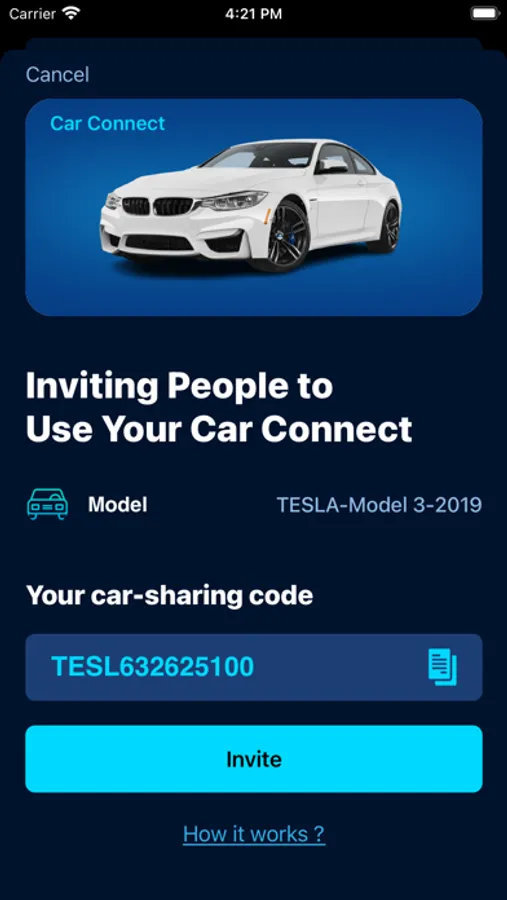 Car Connect App also provides a secure and easy-to-access feature for sharing cars with family members and friends right from your smartphone.
