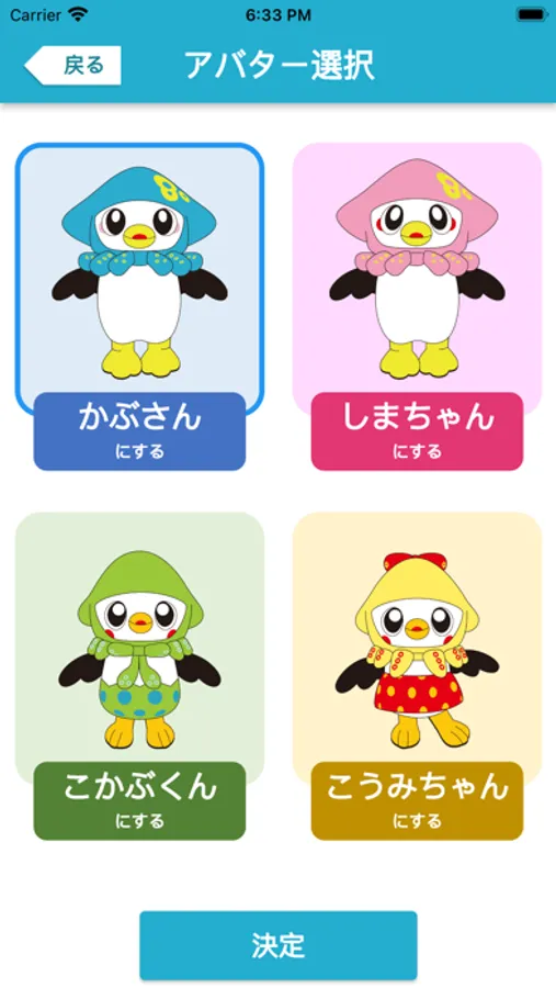 メイン画面に表示されるアバターを4体の中から選択できます。