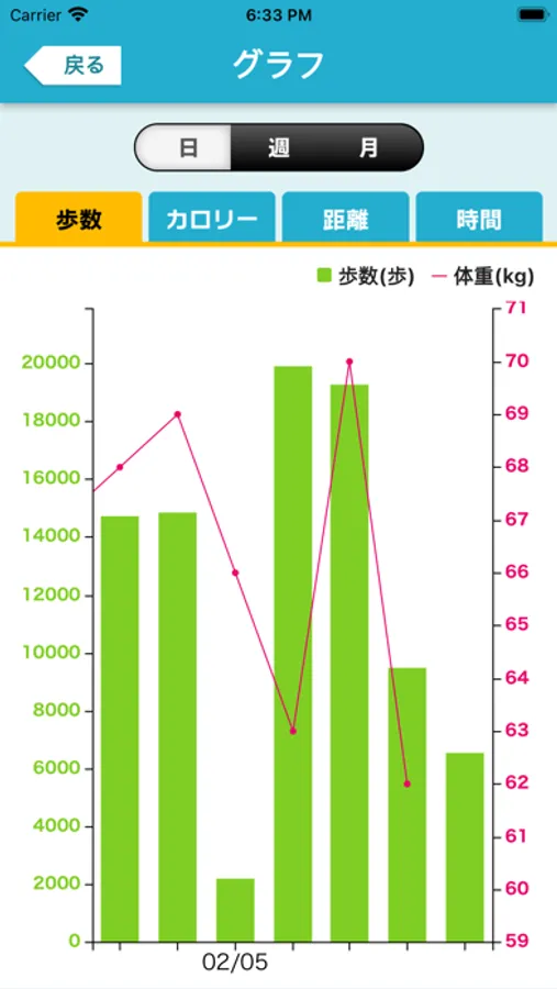 体重や歩数、消費カロリーなどのデータがグラフで表示されます。