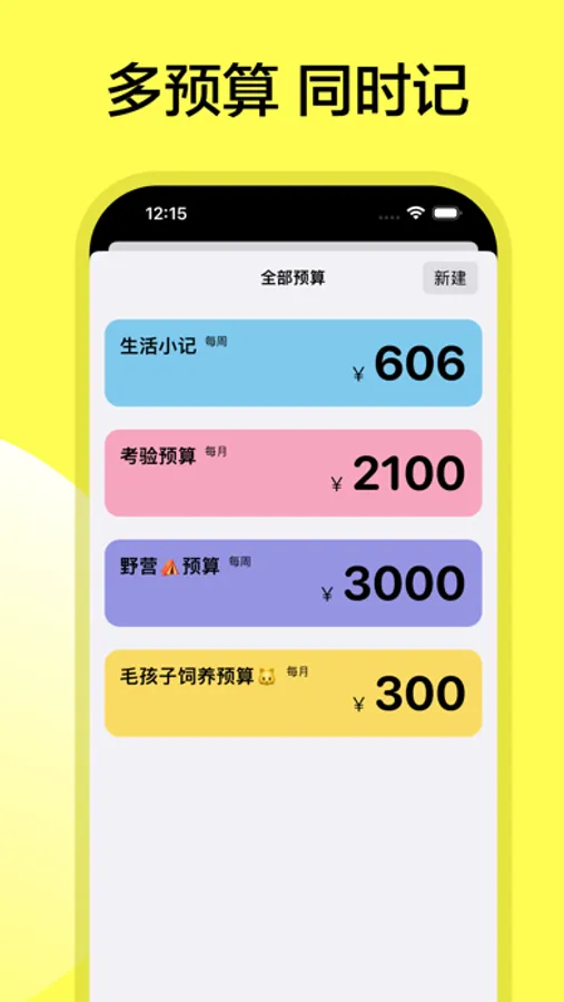 预算制定。在开始记账前,你需要制定你的消费预算,时间、金额、选择这个预算的主题颜色。