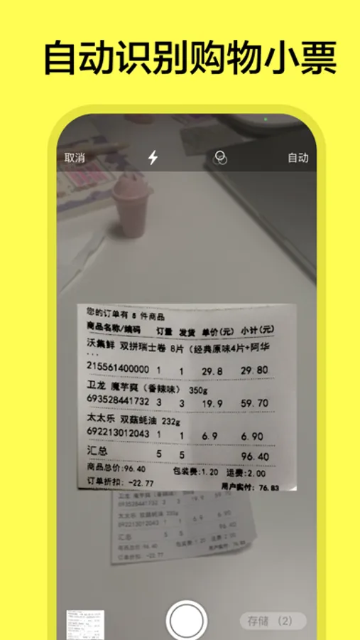 小票扫描。记账的时候,可以打开小票扫描功能,自动扫描消费小票,保存到手机中。