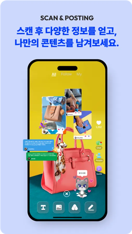 평소 궁금했던 상품을 스캔해 보세요. 기업이 상품에 남긴 광고와 상품 정보가 나타나며 소비자는 궁금했던 상품에 대해 원하는 순간, 필요한 정보를 얻으며 쇼핑의 새로운 즐거움을 만나게 됩니다.