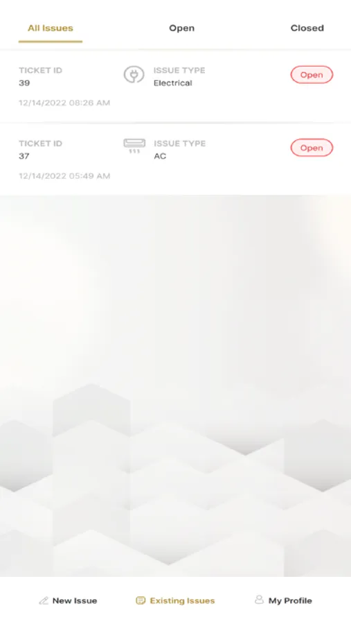 the application is submitted, a ticket is created, and an in-house technician is dispatched to