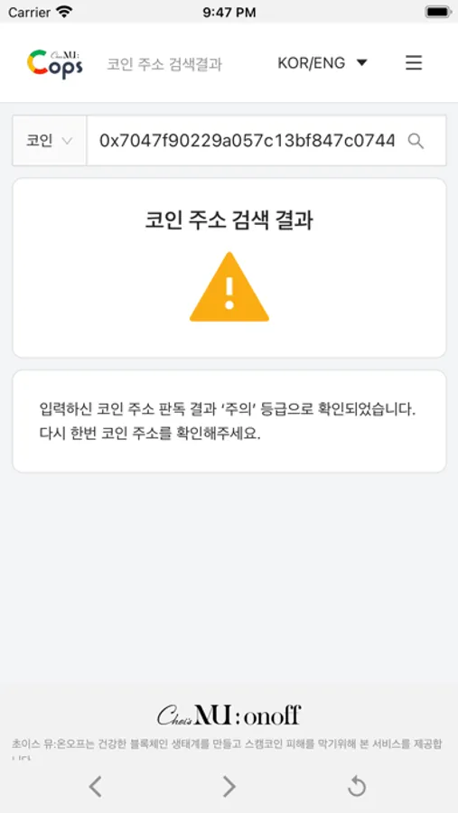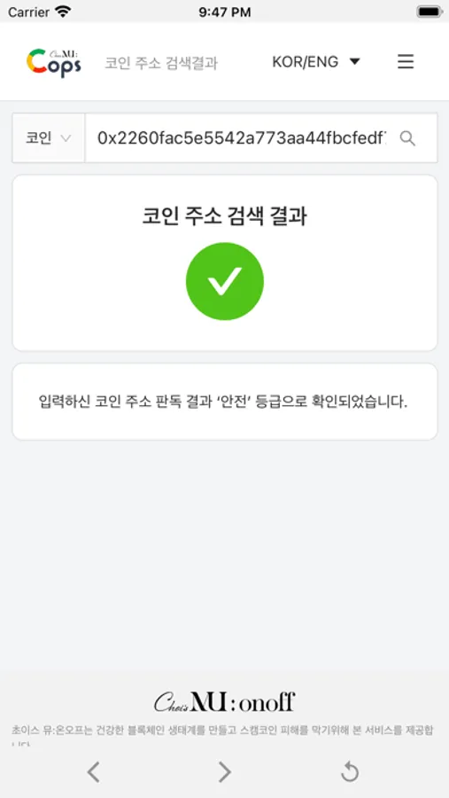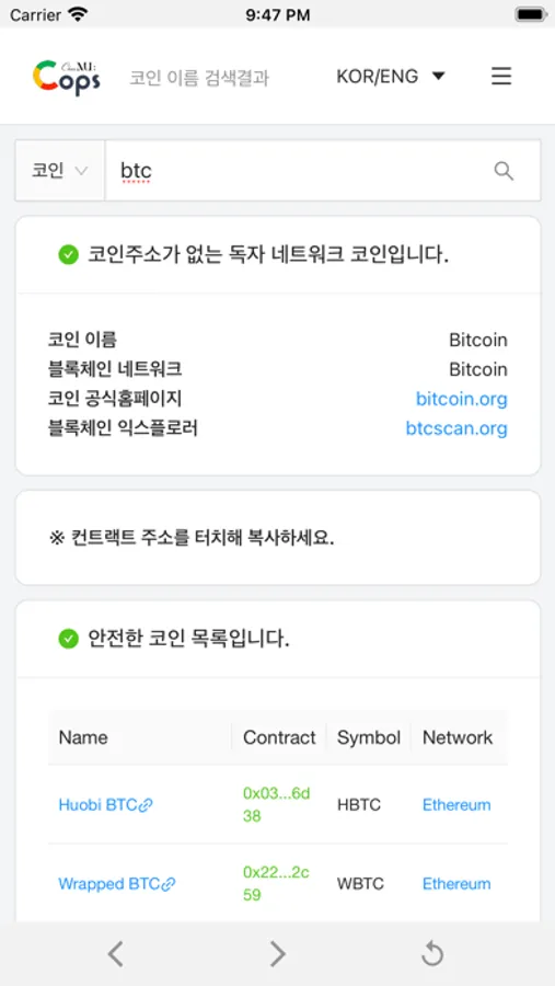 There are thousands of fake coins that share same name, ticker, and symbol with famous coins such as BTC, ETH, USDT, and USDC. They are nearly undistinguishable to even the most knowledgeable experts in crypto. MU:Cops offers an easy and quick service to anyone who wishes to check authenticity and risk associated with dealing crypto.