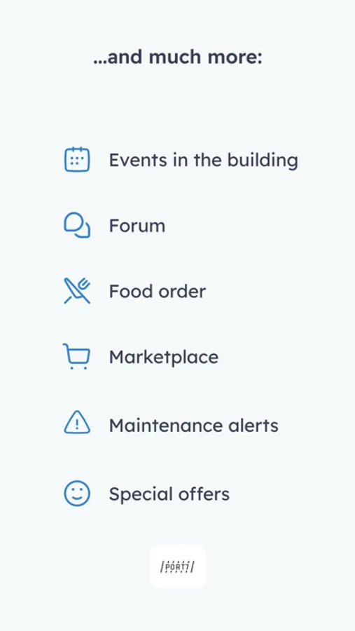 This application is intended not only for employees that work in Port7 but for their visitors as well. Important information about the building is organized on the dashboard, which dynamically changes throughout the day. The app offers more functionality including forums, ability to request maintenance, events, information about companies in the building and about the building itself where you can find important contact, guides and documents.